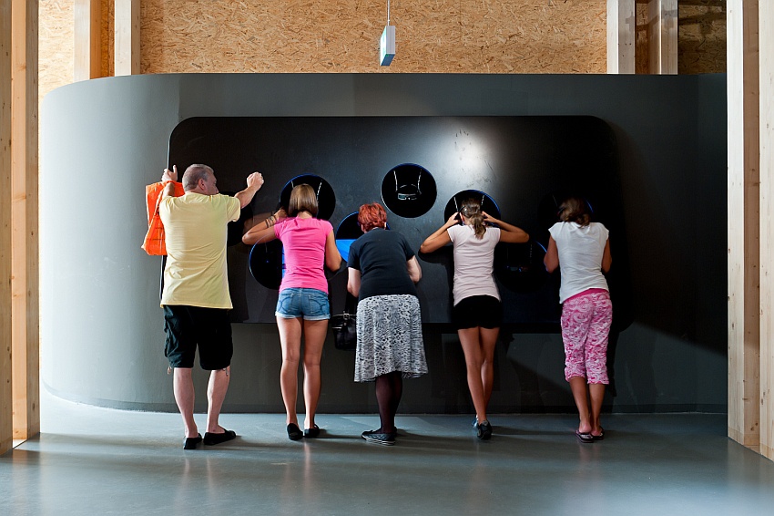 Zum Abschluss des Rundgangs haben die Besucher/innen die Möglichkeit, in einer 3D-Simulation durch das Areal zu „fliegen“ und zu sehen, wie es hier in Zukunft aussehen wird. Mit Panoramaliften kommt man auf den höchsten begehbaren Holzturm Europas und kann aus 40 Metern Höhe einen Blick auf das Areal werfen.