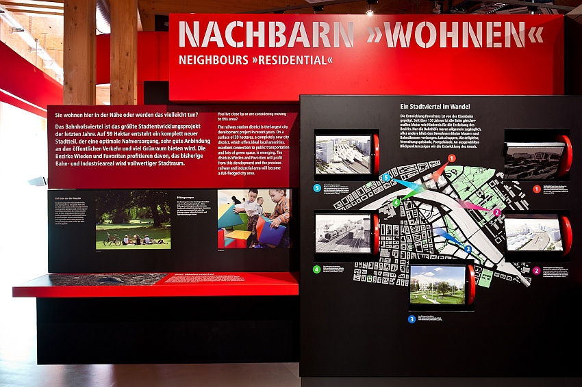 So lautete die Aufgabenstellung für das Informationszentrum bahnorama. Das Großprojekt sollte einfach und einladend vermittelt werden. Die Ausstellung setzt kein Wissen über Bahnbau oder Stadtentwicklung voraus, sondern führt die Besucher/innen behutsam an die Themen heran.