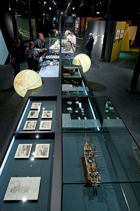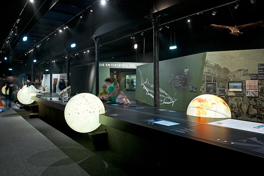 Im Rahmen der niederösterreichischen Landesausstellung in Hainburg („Erobern, Entdecken, Erleben“) konzipierten und koordinierten wir den so genannten Forschertisch. Zahlreiche Partner, Wissenschaftler, Szenografen und Mediengestalter haben zu diesem Tisch beigetragen. Der Forschertisch strukturiert die Formenlandschaft der Architektur, ist Wegweiser, Reflexionsachse und Arbeitsfläche. Zwischen der Sammlung „im Feld“ und der Präsentation in der Vitrine stehen Deutungsprozesse, die am Forschertisch nachvollzogen werden können. Einige Stationen befassen sich daher mit dem Sammeln und Klassifizieren, andere mit dem Navigieren und Kartieren. Strukturiert wird der 28 Meter lange Tisch von historischen Globen. Sie symbolisieren die jeweilige physische Vorstellung von der Erde seit der frühen Neuzeit.