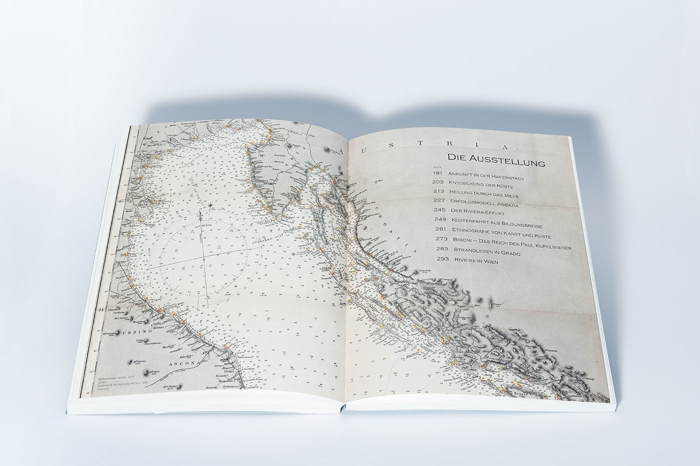 Der Band erkundet die Geschichte der Anbindung Österreichs an das Küstenland – von der Bedeutung der Schifffahrt für die Habsburger über ethnografische Erkundungen von Karst und Küste bis hin zum Adriatourismus nach 1945.