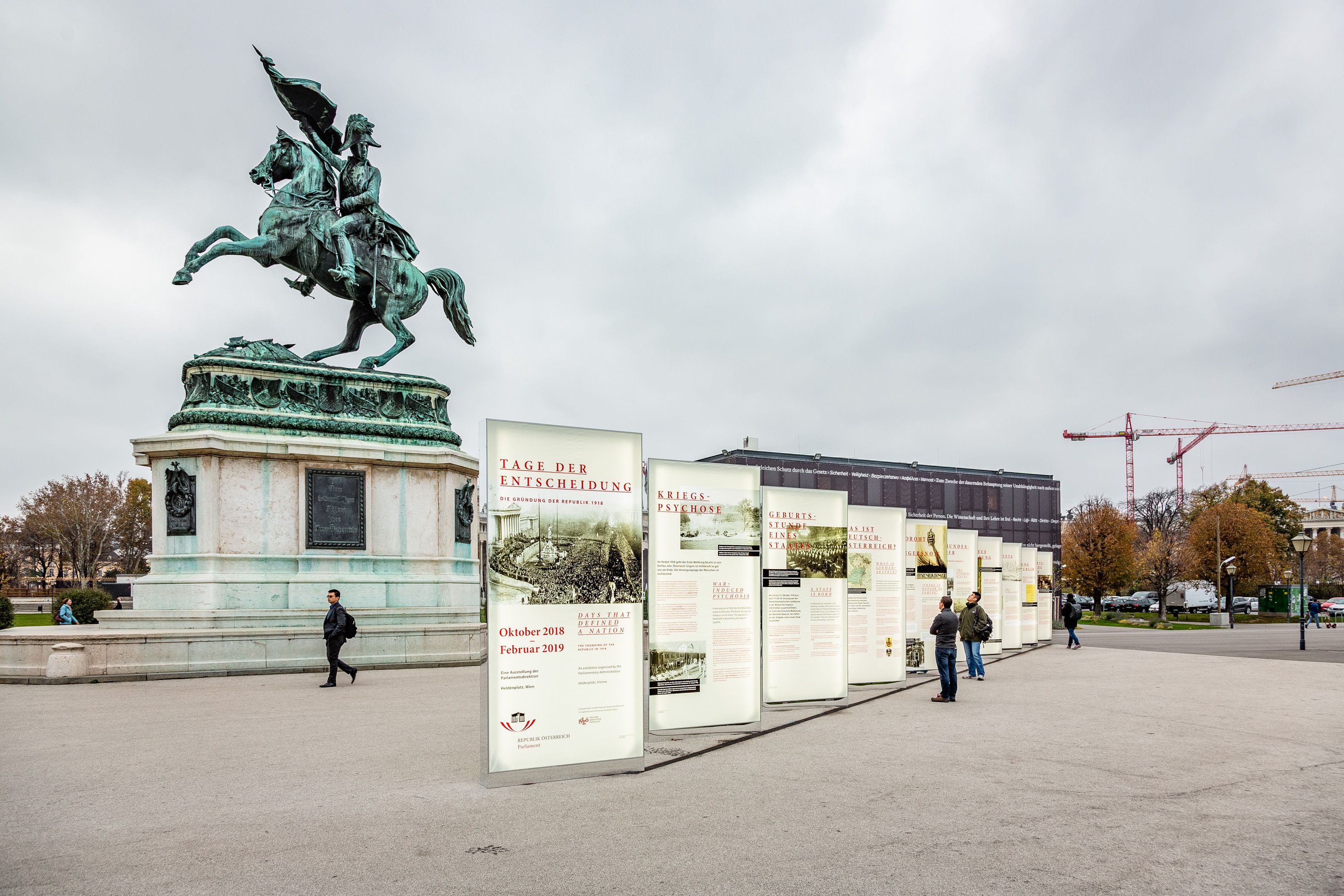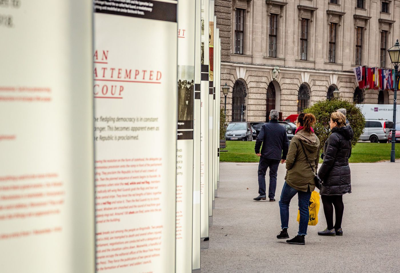 Im Auftrag der Parlamentsdirektion entwickelten wir ein Konzept für ein niederschwelliges Ausstellungsformat in unmittelbarer Nähe der temporären Parlamentspavillons auf dem Heldenplatz. Die Auftaktausstellung widmete sich den entscheidenden Gründungstagen der Republik Österreich und den Schauplätzen, die dabei eine Rolle spielten. Zur Ausstellung erschien eine Begleitpublikation.