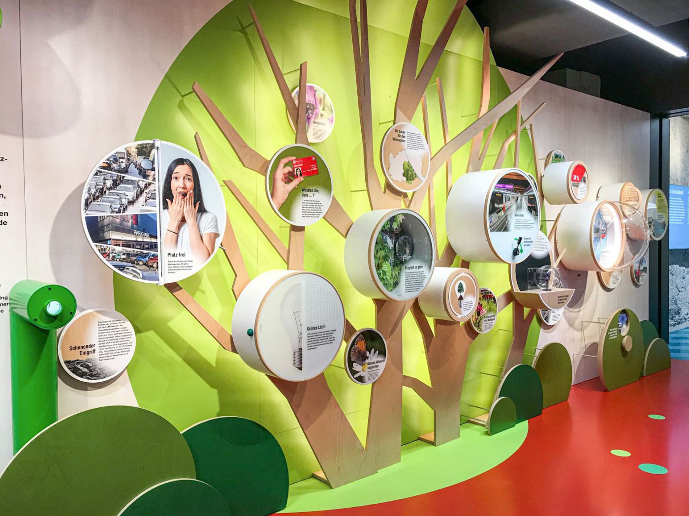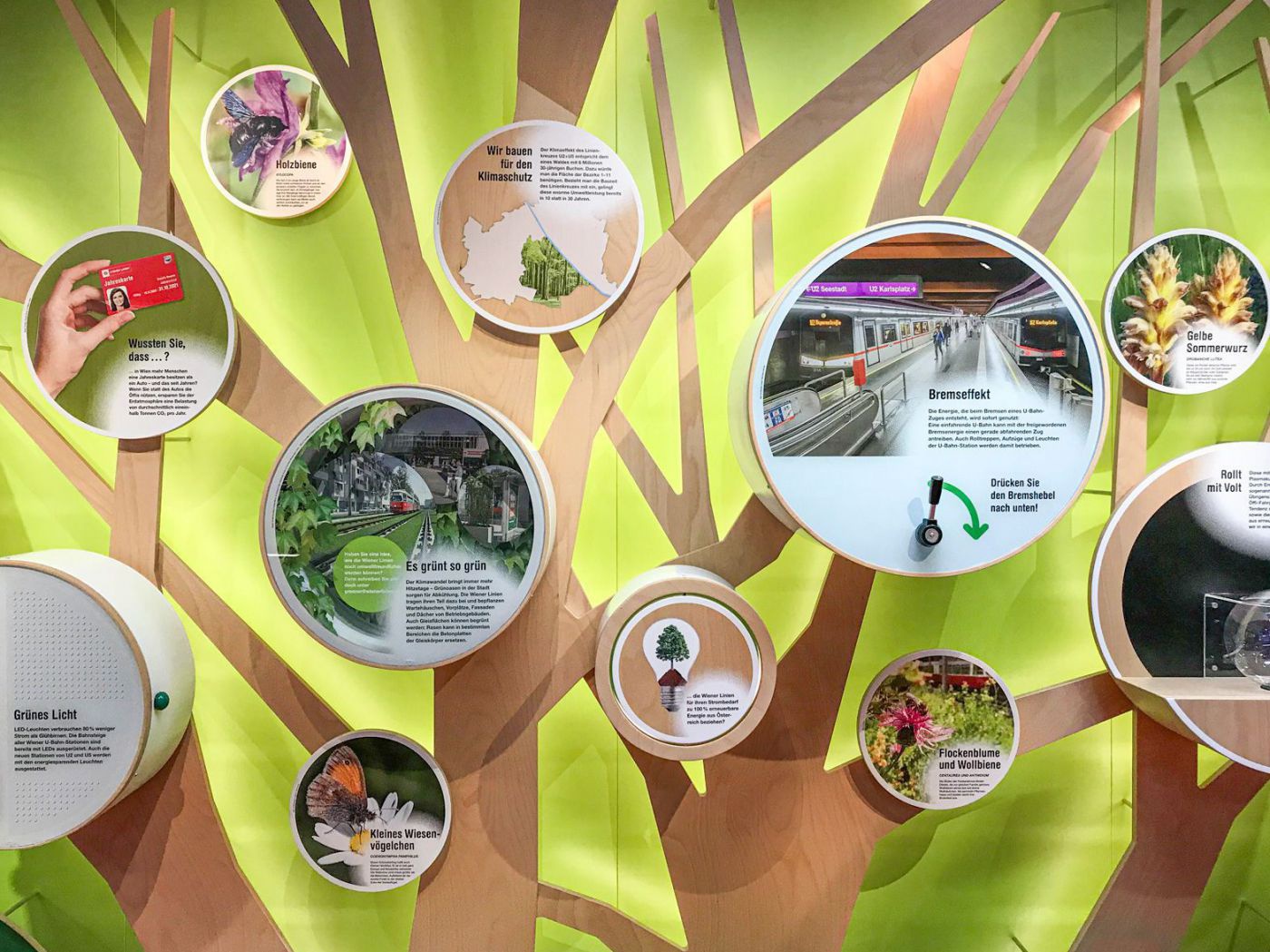 Das Infocenter U2 x U5 der Wiener Linien wurde um ein Modul ergänzt. Die interaktive Umweltwand informiert über "Greener Linien"-Themen - Klimaschutz, Artenvielfalt und emissionsarme Antriebe. Die Herstellung des Moduls erfolgte unter Verwendung von nachhaltigen Materialien.